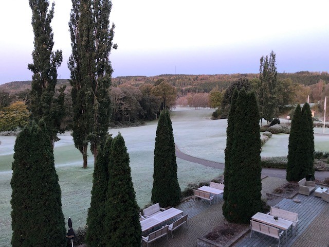 Den första frosten är väldigt känslig, gräset har inte börjat sin invintring och är kvar i ett växtstadie. Detta innebär att gräset fortfarande är fullt av vatten och vid frost bryts grässtråna av, resultatet blir svarta fotspår där någon gått eller svarta hjulspår där någon dragit sin vagn eller kört ett fordon. Därför är det absolut förbjudet att beträda golfbanan då det är frost och banan är helt stängd tills frosten har släppt.